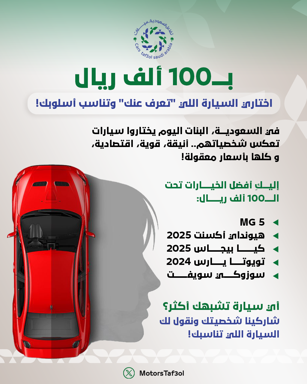 The Saudi Tafa'al website provides you with infographics on the best cars under 100 riyals.